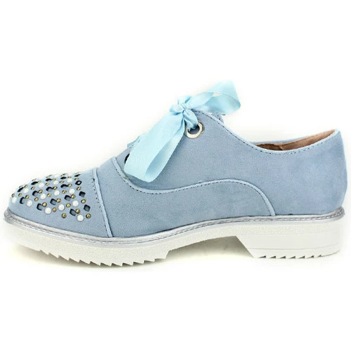 Derbies bleues PINKAS Mode, Sublime derbies en synthétique bleu. Empiècement à perles noires, blanches et rivets clous dorés. Joli lacet réglable en satin. Top Tendance avec un jean ou une jupe !, Semelle intérieure confort. Semelle extérieure épaisse blanche crantée antidérapante. Joli liseré argenté., , ,