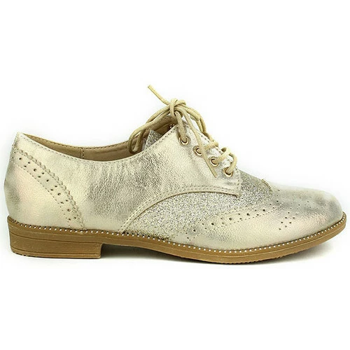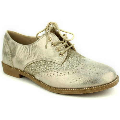 Derbies dorées WEIDE paillettes, Craquez pour ces sublimes derbies bi matières synthétique et paillettes dorées, façon richelieu. Agrémentées de sublimes surpiqures à l’avant et au talon. Son lacet corde réglable vous permettra de bien maintenir votre pied. Idéal pour un look top Féminin ou boy friend. Chic, élégante et tendance. , Petite talonnette de 2,5cm et semelle extérieure antidérapante à rainures. Top confort, Tendance et Ultra féminine. Vous pouvez les porter avec un pantalon 3/4 ou une jupe., , ,