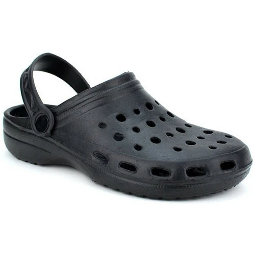 Sabots Plastiques Noires POPS, Semelle intérieure confort incurvée, Semelle antidérapante crantée, Bride maintien, PVC Confort,