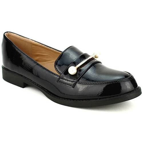 Mocassin noir verni LIANA, Mocassin à talon avec surpiqures et synthétique verni noir extérieur. Agrémenté d’une jolie plaque en métal doré avec strass., Talonnette avec Semelle intérieure confort et Semelle antidérapante., Chic & Confortable , ,