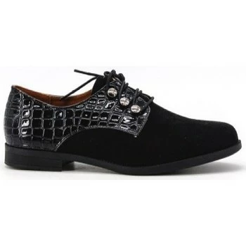 Ballerines Noir bimatière CINK ME, Magnifiques derbies bimatière, grande pointure. Couleur Noir., L’avant est en simili daim et l’arrière est de style croco verni. Fermeture à lacets. , Semelle antidérapante, talonnette 3cm., ,