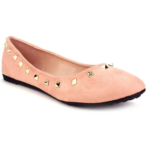 Ballerine pInk CINKS CLOUS, Ballerine grande pointure simili peau cuir extérieur Rose. Agrémentée d’un liseré rivets clous dorés., Semelle intérieure cuir et Semelle antidérapante. Chic & Confort, , ,
