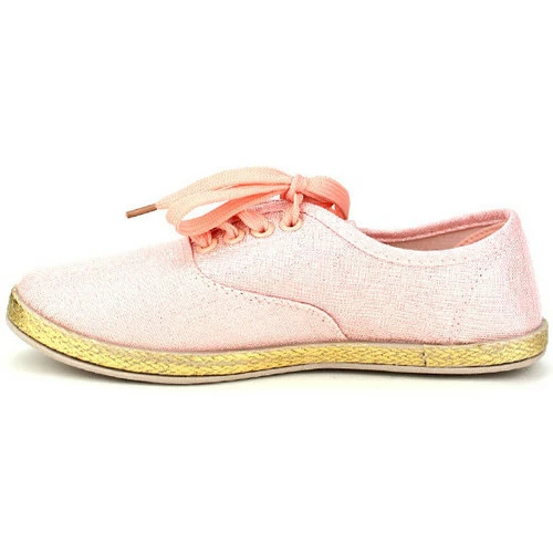 Derbies façon espadrille KIENA , En tissu rose paillettes façon jean. Liseré contour corde façon dorure. Lacet réglable., Semelle intérieure Confort et Semelle antidérapante. Souple, confortable, , ,