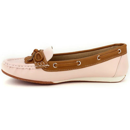 Mocassins color pink OMODA, Craquez pour ces sublimes mocassins façon chaussure bateau. En synthétique rose et empiècement marron. Agrémenté d’un noeud plat et revers franges fantaisies et de sublimes surpiqures. Ultra féminine et Tendance, portez les en journée comme en soirée., Semelle intérieure cuir et semelle extérieure antidérapante à rainures. Top tendance ce printemps avec une robe ou un pantalon., , ,