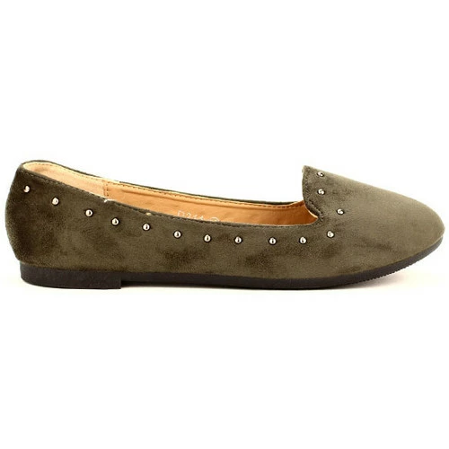 Ballerine Taupe Clous GALA MODA, Ces ballerines de forme mocassin en simili daim taupe seront parfaites pour cet automne. Le liseré clous en métal argenté appoprte toute son originialité., Votre démarche sera souple et légère grâce à sa semelle intérieure confort à petits coussins et sa semelle antidérapante., , ,
