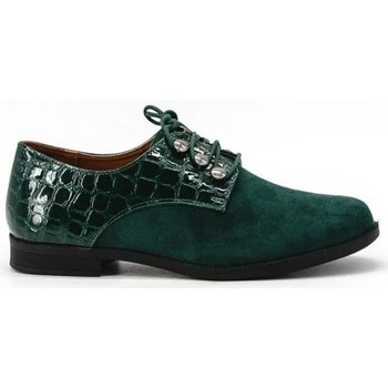 Ballerines Vert Foncé CINK ME, Magnifiques derbies bimatière, grande pointure. Couleur vert sapin., L’avant est en simili daim et l’arrière est de style croco verni. Fermeture à lacets., Semelle antidérapante, talonnette 3cm., ,