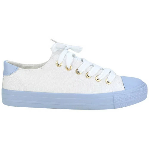 Baskets Blanches and Blue LIPOOS, Basket toile blanche avec empiècement synthétique bleu lavande devant et au talon. Lacet réglable., Semelle intérieure confort et semelle antidérapante crantée et épaisse bleu lavande., Top tendance avec un jean ou short , ,