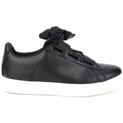 Baskets Noires LOLY MOO, Jolie lacet large satin noir. En simili peau cuir agrémenté de surpiqures., Semelle intérieure Confort et Semelle antidérapante épaisse crantée 3cm, Top fashion & Confortable, ,