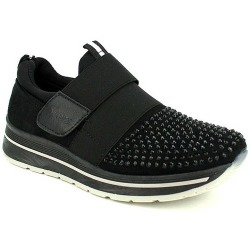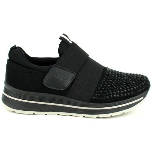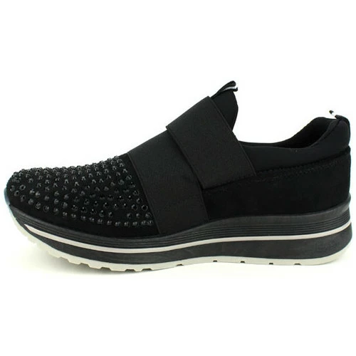 Baskets Noires PINKAI, Basket bi matière top confort. Façopn velours au talon, agrémenté de multiples strass noir à l’avant et présence d’une bride élastique et d’un scratch pour un très bon maintien du pied., Top confort, ces baskets sont idéales pour un street look. Idéal également pour des séances de sport en salle, gym, yoga. Semelle extérieure épaisse antidérapante crantée., , ,