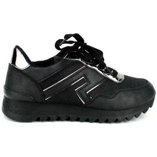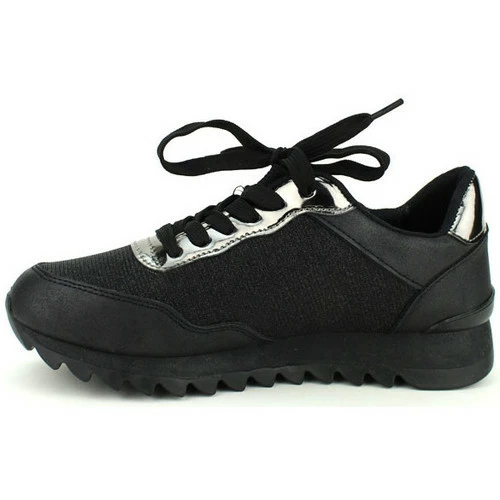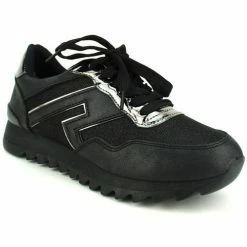 Baskets Noires CINKS LOOK, Envie d’un look féminin et sportif. Cette paire de basket est top tendance. En synthétique avec empiècement façon tissu à pailettes. Empiècement verni argenté avec lacet plat réglable. Très bon maintien du pied., Semelle épaisse antidérapante crantée. Très confortable et élégante., , ,