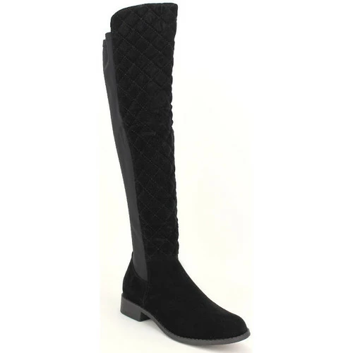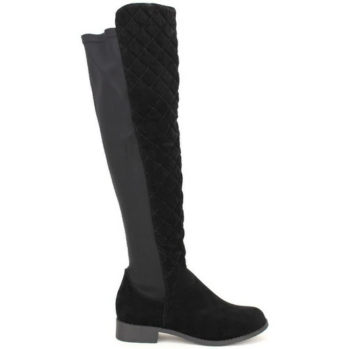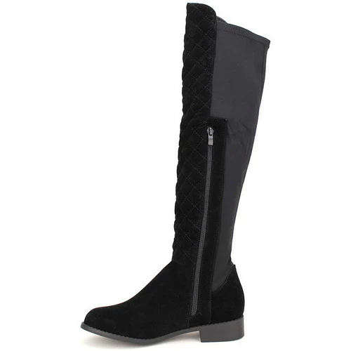 Cuissarde Noire CH CREATION, Botte cuissarde bi matière daim surpiqué et bande toile extensible. Tige de 44cm avec zip pour un enfilage facile. Tour de mollet de 38cm à 42cm., Semelle intérieur cuir, Talonnette et semelle extérieur antidérapante. Très tendance cet hiver !, , ,