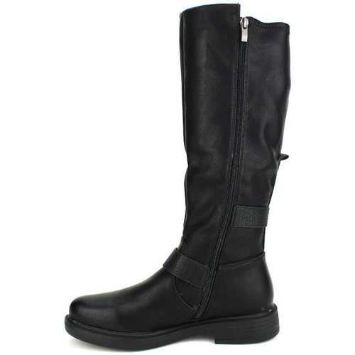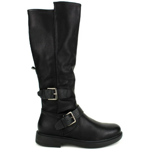Bottes Noires ROOTS WEIDE, Optez pour le look Motarde grùce à ces bottes synthétique noir. Tige souple de 36cm avec brides à boucles fantaisies. Une fermeture zip le long de la tige cÎté intérieur est prévue pour facilement enfiler ou fermer vos chaussures., Petite talonnette de 3cm et semelle extérieure antidérapante à rainures. Intérieur fourré, confort, douceur et chaleur garanti cet hiver., , ,