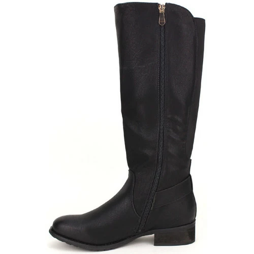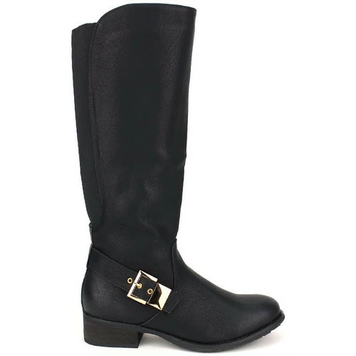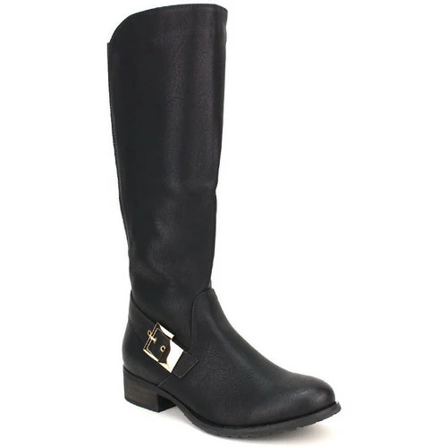 Botte Cavalière Noire DEILINE, Tige simili peau cuir noir de 38cm avec bride à boucle fantaisie. Zip le long de la tige. Tour de mollet de 38cm avec bande élastique extensible., Semelle intérieur cuir, talonnette et semelle extérieur antidérapante. Tendance & Confort, , ,
