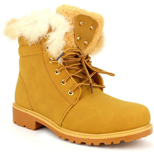 Bottine TANGERS Camel TOLLS, Bottine style Rangers à lacet réglable. Aspect cuir extérieur couleur camel. Intérieur fourré très chaud et fausse fourrure apparente., Semelle intérieure fourrure, Talonnette et semelle antidérapante crantée., Top tendance cet hiver !, ,
