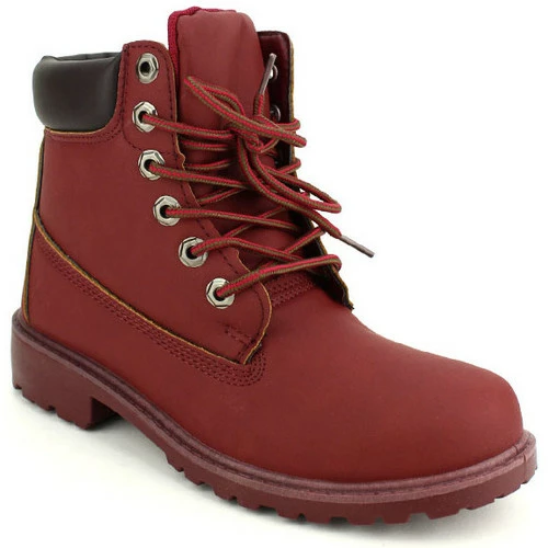 Bottine Bordeaux CLAK, Craquez pour ces bottines façon rangers en synthétique bordeaux. Bottine à lacet réglable. Tige de 12cm et liseré molton marron. Très confortable., Talonnette et semelle extérieure antidérapante crantée. Idéal en cette saison., , ,