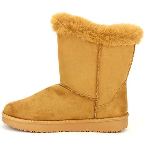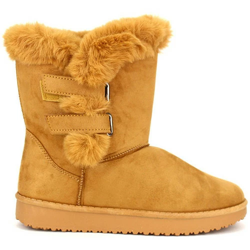 Boots Camel Fourrées ILLS , Boots simili daim extérieur couleur camel à imperméabiliser. Tige ornée de fausse fourrure et de deux brides scratch réglable. Facile à enfiler., Semelle intérieure fourrure, Semelle antidérapante épaisse de 2,5cm crantée., Intérieur fourré très chaud, Idéal par grand froid., ,