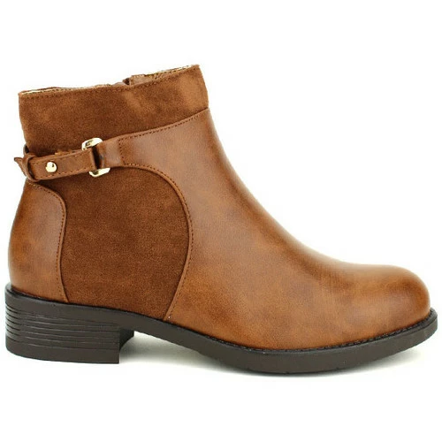 Bottines Caramels CINKS MEE, Splendide bottine bi matière synthétique et simili daim camel. Agrémentée d’une jolie boucle fantaisie en métal doré sur le côté. La tige est de 12cm. La fermeture zip côté intérieur vous permettra d’enfiler et fermer facilement et rapidement les bottines. Idéal en mi saison, nous vous conseillons de les imperméabiliser., Bottines à talon de 3cm avec une semelle extérieure antidérapante à rainures. Top confort., , ,