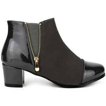 Bottine Grise DIOLA Mode, Semelle intérieure cuir , Bi matière vernie, feutrine, Talon 6,5cm, zip avec bande élastique ajustable, Tendance & Chic , Grande pointure