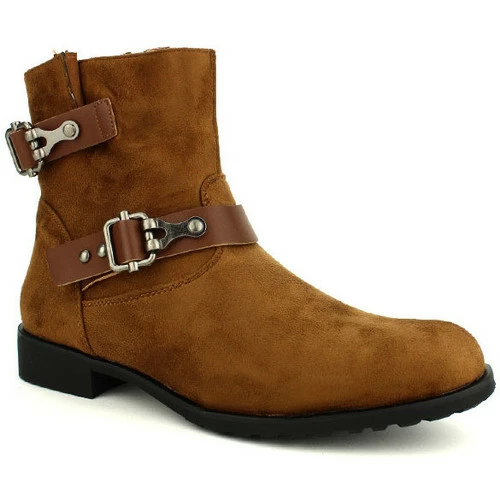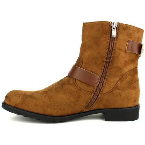 Bottines Marron BELLO STAR, Craquez pour ces très jolies bottines en simili daim marron. La tige de 16cm est agrémentée d’une bride synthétique ton sur ton à boucle métal fantaisie. Petit soufflet en haut de tige afin d’ajuster le tour de mollet à votre morphologie. Une fermeture zip est prévue côté intérieur tout le long de la tige pour facilement enfiler et fermer les boots., Petite talonnette carrée de 2cm. Semelle extérieure antidérapante à rainures. Nous vous conseillons de les imperméabiliser pour la saison., , ,