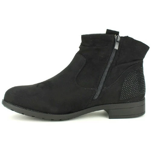 Bottines Noires ML SHOES STRASS, Optez pour ces jolies bottines en simili daim noir. La tige de 11cm est agrémentée de surpiqures et de jolis strass noirs au talon. La fermeture zip côté intérieur vous permettra d’enfiler et fermer facilement les chaussures., Sa talonnette de 3cm et la semelle extérieure sont antidérapantes à rainures. Top confort, Tendance et féminine. Portez les avec un jean ou un legging., , ,