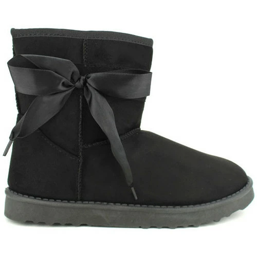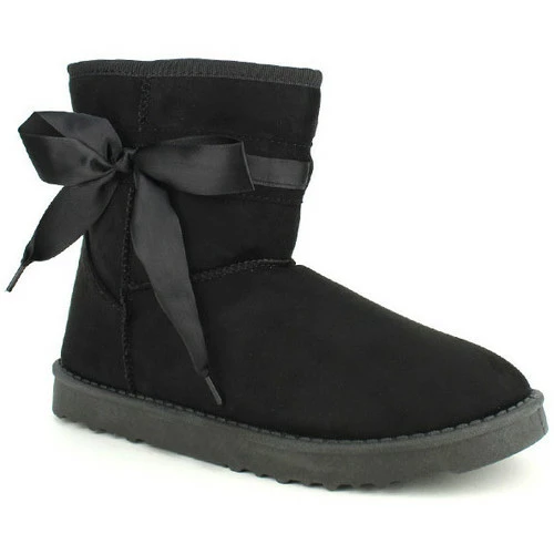 Boots Noires Fourrée SNOW, Craquez pour ces splendides boots plates en simili daim noir. Boots à enfiler, à la tige de 14cm agrémentée d’une jolie bride à noeud en tissu satiné. Nous vous conseillons de les imperméabiliser., Bottine à l’intérieur intégralement fourré de fausse fourrure très chaude. Semelle plate et épaisse antidérapante crantée., , ,
