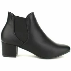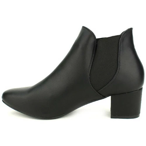 Lows boots black CINKS ME, Sublime low boots grandes tailles en synthétique noir. La tige de 10cm est agrémentée d’empiècements élastiques pour facilement les enfiler. Boots grandes pointures à enfiler., Talon large, carré et stable de 5,5cm. Semelle extérieure antidérapante à rainures. Très féminine et confortable, , ,