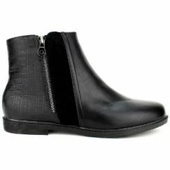 Bottines Noires synthétique M&L SHOES, Craquez pour ces sublimes bottines grandes pointures bi matière synthétique, simili daim et simili croco noir. Le zip côté extérieur est fantaisie et la fermeture zip côté intérieur vous permet d’enfiler et fermer facilement les boots. Son intérieur finement fourré vous procurera douceur, chaleur et confort toute la saison., Sa talonnette et sa semelle extérieure sont antidérapantes à rainures. Top confort, élégante et chic, portez les avec une tunique pull ou un pantalon., , ,