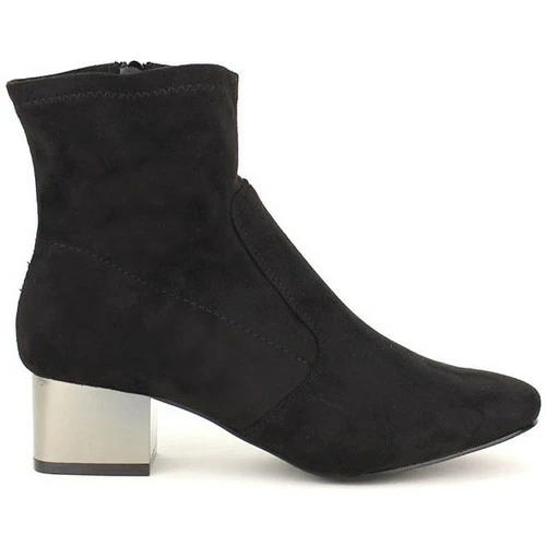 Bottine Noire Daim WELNY, Semelle intérieure cuir, Talon façon métal 5cm Confort, Semelle antidérapante , Bottines à imperméabiliser, Chic & Confortable