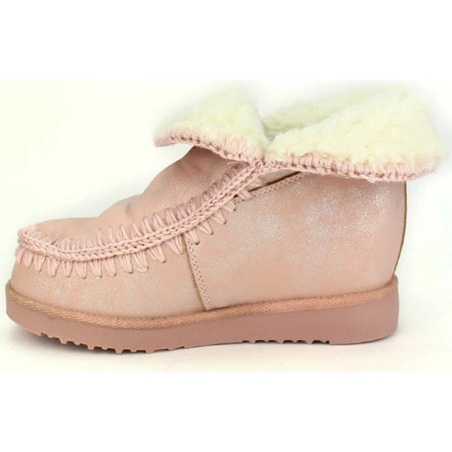 Boots pailletées pink fourrées CLARA MODA, Craquez pour ces boots fourrées compensées avec de sublimes surpiqures. En aspect synthétique rose poudré brillant ultra girly. La tige est à revers moumoutte blanche. Son intérieur fourré trÚs chaud vous apportera confort, douceur et chaleur., Talon compensé interne de 2cm et semelle extérieure épaisse antidérapante crantée., , ,