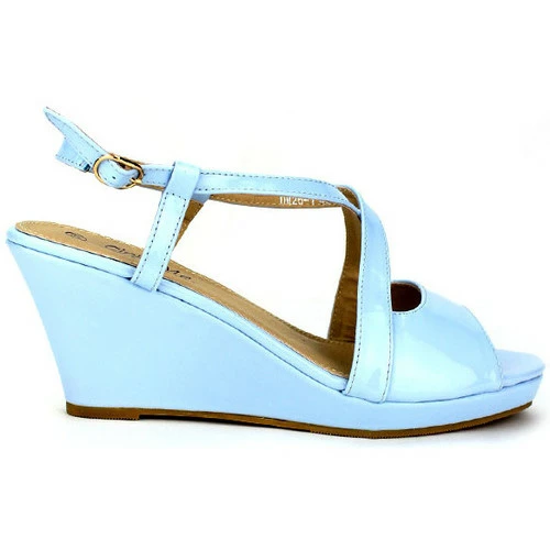 Compensée vernie bleu ciel CINKS ME, Sandale compensée grande pointure en synthétique verni bleu ciel. Brides entrecoisées et bride cheville réglable par une boucle. Bout ouvert Mode !, Talon compensé de 9cm avec plateforme. Semelle intérieure cuir et semelle antidérapante. Tendance & Confort, , ,