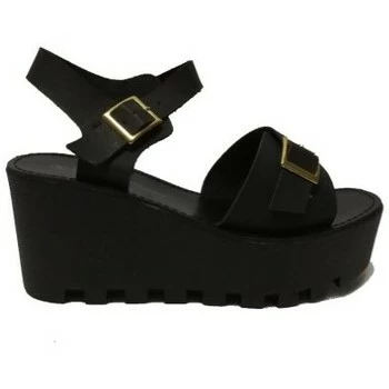 Compensées Noires à boucles Dorées, Bride réglable sur le dessus du pied et aussi à la cheville, grâce à des grosses boucles dorées. Aspect extérieur synthétique noir., Compensé Crantée 8cm avec plateforme. Intérieur cuir. Top Fashion cet été !!! It’s Shoes, , ,