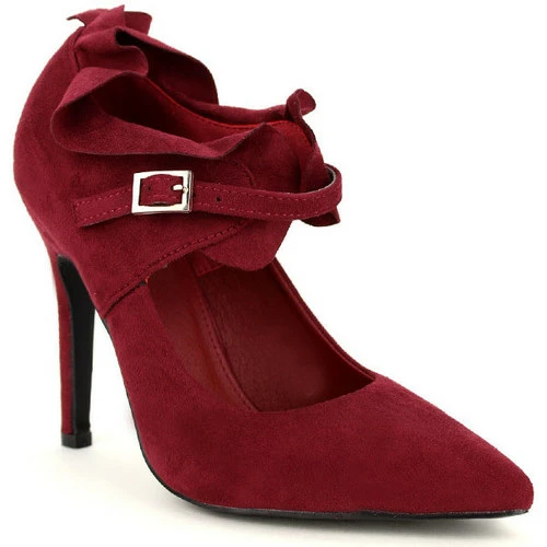 Escarpins Bordeaux Froufrou C’M, Escarpin pointu en simili peau cuir bordeaux. Cheville maintenu par une bride réglable avec une boucle. Joli froufrou Mode., Talon aiguille 11cm, Semelle intérieure confort et semelle antidérapante , Idéal pour une soirée ou cérémonie, ,