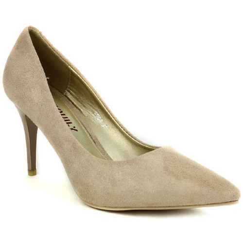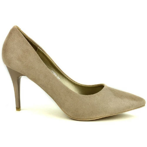 Escarpin doré EXQUILY, Craquez pour ces splendides escarpins pointus aspect daim taupe reflet paillettes. Très féminin et élégant, ils affineront votre silhouette et galberont vos jambes avec élégance., Splendide talon aiguille verni de 8cm. Semelle extérieure antidérapante à rainures., , ,