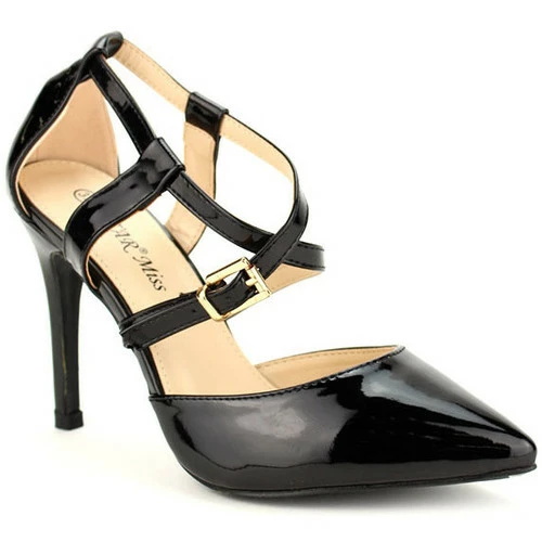 Escarpin Noir STAR MISS, Jolies sandales qui habillent le pied grâce à un jeu de brides, semelle intérieur confort, Avec un talon de 10cm et un confort avec semelle antidérapante, Idéal pour une soirée ou cérémonie avec une jolie robe , ,