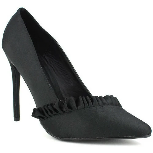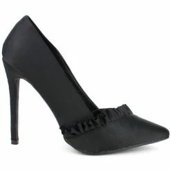 Escarpins Noirs C’M TANIA, Craquez pour ces magnifiques escarpins pointus Noir satin. On adore son décolleté V et sa forme pointue. On aime son liseré froufrou volant. Ultra féminine, Méga Glamour, portez les avec un tailleur ou un jean et une chemise. Une silhouette affinée et des jmabes galbées, ces escarpins habillerons avec élégance vos pieds., Joli talon aiguille recouvert assorti de 11cm. Une semelle intérieure à coussinets et une semelle extérieure antidérapante à rainures., , ,