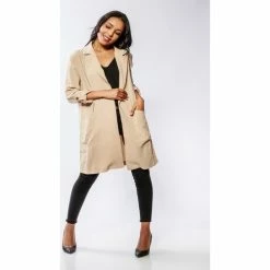 Veste Beige longue ouverte KI&LOVE, Magnifique veste longue ouverte de couleur beige, très légère à porter qui sera parfaite pour finaliser un look., Manches longues, 2 poches et col style trench., Vous pouvez également porter la veste comme une robe style portefeuille agrémentée d’une grosse ceinture comme fermeture., ,