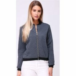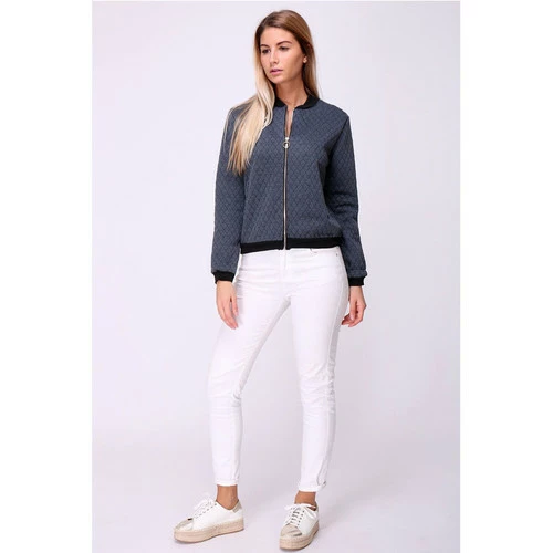 Veste BOMBER MODERN Blue jean, Craquez pour cette veste bomber en tissu molletonné gris. Tissu doublé doux et confortable. Liseré noir au col en bas et aux manches. Poches sur les côtés. Fermeture zip doré. Très féminin et idéal cette saison., Sa longueur est d’environ de 54cm. Il est composé à 95% polyester 5% elasthanne., , ,