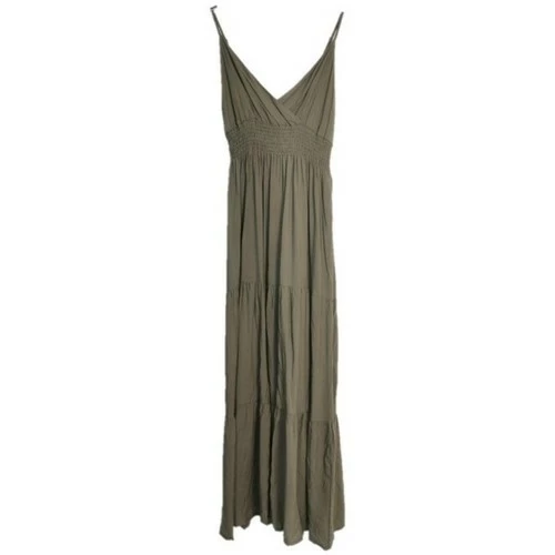 Robe longue Kaki MISS EVY, Magnifique robe longue à bretelles fines de couleur kaki. Encolure de type cache coeur, qui mettra en valeur toutes les poitrines. Tissu léger et fluide., Elastique ceinturant sous la poitrine. Parfait pour magnifier toutes les morphologies cet été., La mannequin mesure 1m77, ,