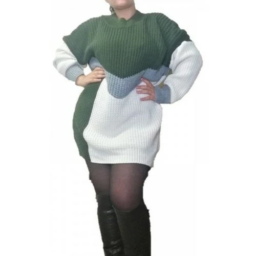 Robe Pull en maille Beige/Kaki, Superbe robe pull à grosse maille. Motifs géométriques aux couleurs bleu marine et bordeaux. Elégante et chaude, elle vous accompagnera tout l’hiver. Coupe overzise, très tendance avec des cuissaredes. Coposition : 100% acrylique. Taille unique : convient aux tailles M, L, XL voir XXL, , , ,