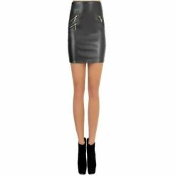 Jupe Noir synthétique, Craquez pour cette mini jupe en synthétique avec ses 2 zips dorés sur le devant. Un grand classique., Sexy et féminine. Elle s’étire jusqu’à 1cm. Fermeture éclair dorée dans le dos, Coposition : 95% polyester, 5% élasthane, ,