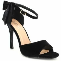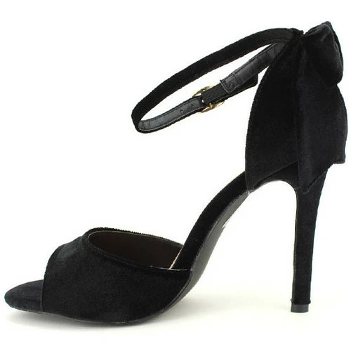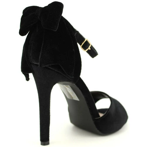 Sandale Noire Velours C’M , Semelle intérieure Confort, Avec bride réglable à la cheville, Joli Noeud velours au talon, Talon 12cm Aiguille, semelle antidérapante, Chic & Elégante
