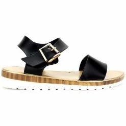 Sandale noire CINKS LOOK, Semelle intérieure confort incurvée, Simili peau cuir extérieur, Avec bride réglable à la cheville , Semelle antidérapante épaisse crantée, Souple, confortable