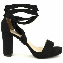 Sandale simili peau Noire CINKS, Craquez pour ces sublimes sandales à talon haut grandes pointures en velours noir. Bride à l’avant et talon fermé. Joli lacet velours doux à nouer autour de la cheville ou le long du mollet., Joli talon haut recouvert assorti de 10cm. Plateforme à l’avant de 2cm. Semelle extérieure antidérapante à rainures., , ,