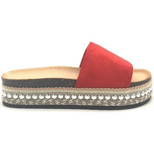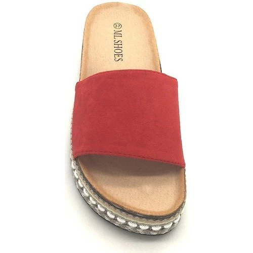 Mules Rouges ML SHOES, Optez pour ces splendides mules en simili peau rouge avec frise apposée au niveau de la semelle., Semelle intérieure incurvée et semelle extérieure épaisse antidérapante pour un total confort, Chic & Confortable, Idéal cette saison avec une combishort ou un jean slim, ,
