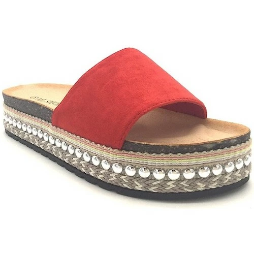 Cendriyon Sandales Rouge Chaussures Femme for Sandales et Nu-pieds Couleur Rouge