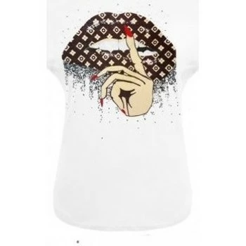 Top Blanc , Tee shirt blanc à l’imprimé lèvres , 100% coton, Dimensions tolérance +/, 5 cm : longueur: 64 cm largeur: taille 46cm,