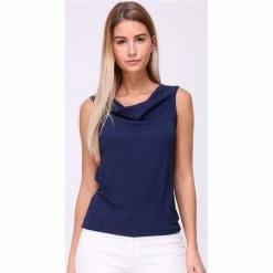Top color Marine REVD’ELLE, Craquez pour cette jolie blouse sans manche en tissu bleu marine. Col tombant et coupe près du corps. Très féminin ce top est idéal pour une tenue habillée et chic. Bi matière très confortable et agréable à porter., Sa longueur est d’environ 55cm. Top composé à AVANT 93% polyester 7% elasthanne DOS 95% viscose 5% elasthanne., , ,