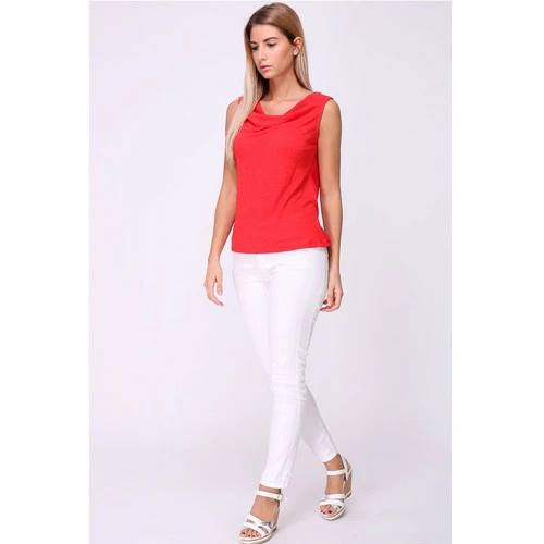 Top color Rouge REVD’ELLE, Craquez pour cette jolie blouse sans manche en tissu rouge. Col tombant et coupe près du corps. Très féminin ce top est idéal pour une tenue habillée et chic. Bi matière très confortable et agréable à porter., Sa longueur est d’environ 55cm. Top composé à AVANT 93% polyester 7% elasthanne DOS 95% viscose 5% elasthanne., Fabriqué en France , ,