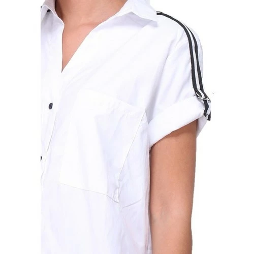 Chemise Blanche YLIA, Craquez pour cette belle chemise en tissu blanc à liseré noir aux épaules. Fermeture bouton et col chemise. Idéla pour un look garçonne. On adore cette chemise porter avec des sandales à talon et un pantalon slim., La chemise est composée à 100% coton. Très confortable à porter., , ,