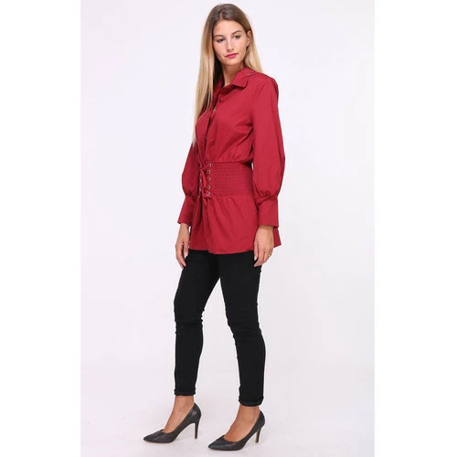 Chemise Bordeaux BELLAVIE, Craquez pour cette splendide chemise bordeaux ultra féminine. Chemisier manches longues à fermeture boutons et laçage à la taille. Taille élastiquée. Idéal avec un slim., La longueur du chemisier est de 74cm et est composé à 100% polyester, , ,